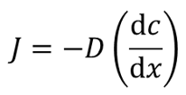 Where J is the flux of the substance, D is the diffusion coefficient, c is the concentration, and x is the distance. The negative sign indicates that the diffusion is from high concentration to low concentration.