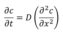 where ∂c/∂t is the rate of change of concentration with time, D is the diffusion coefficient, and ∇²c is the Laplacian of the concentration field.