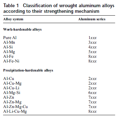 알루미늄 합금은 일반적으로 조성에 따라 합금 지정 시리즈로 분류됩니다.